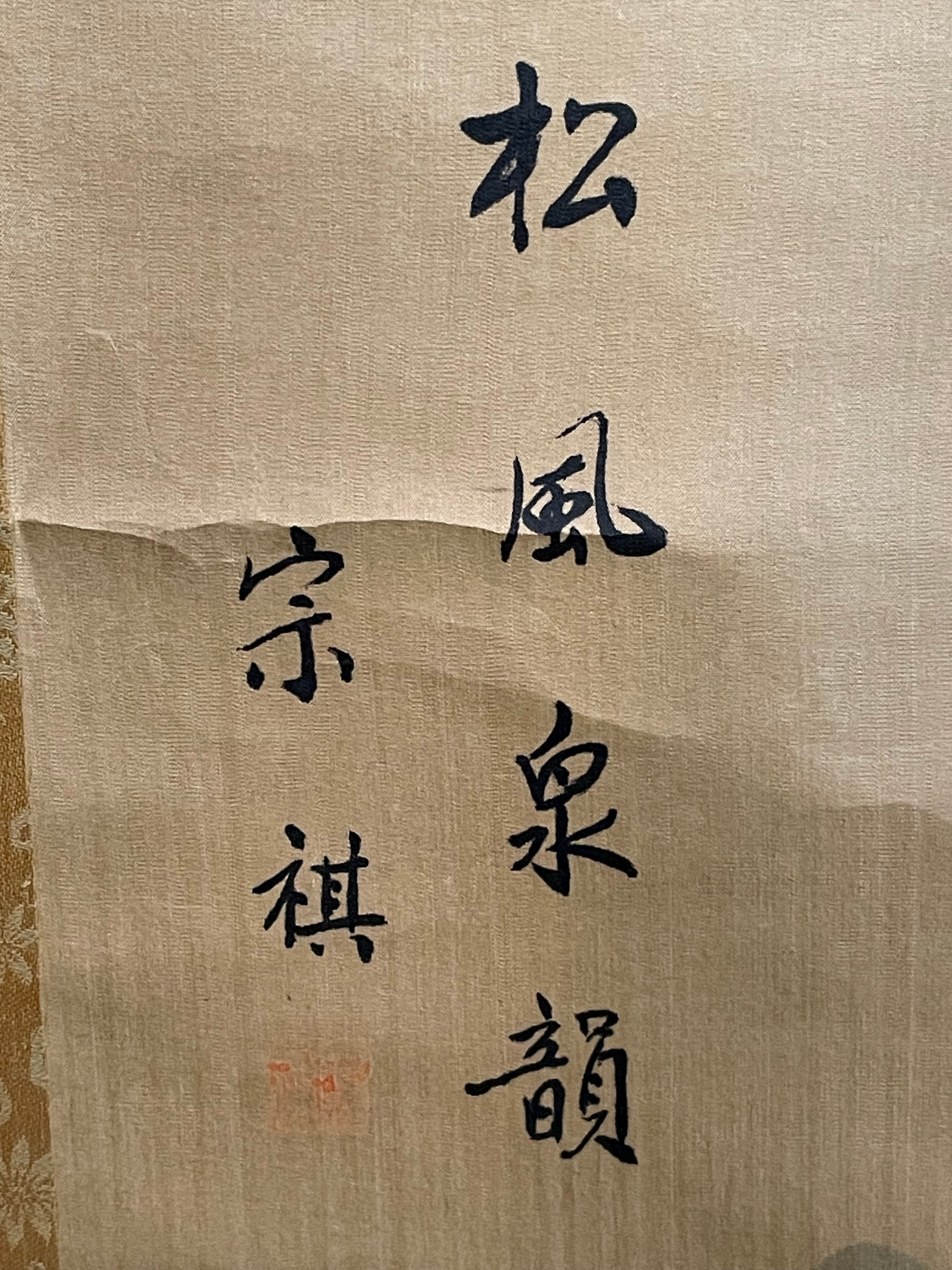 掛軸 宗祺『松風泉韻』山水画 滝と松 絹本 水墨画 夏掛け 涼を呼ぶ一幅