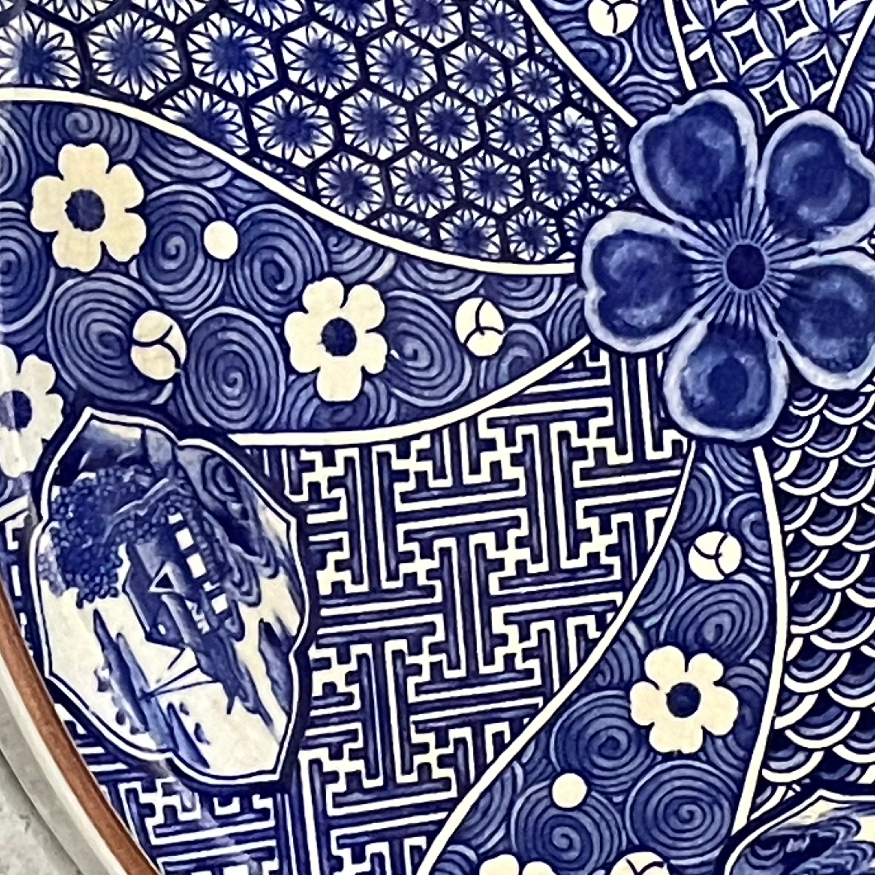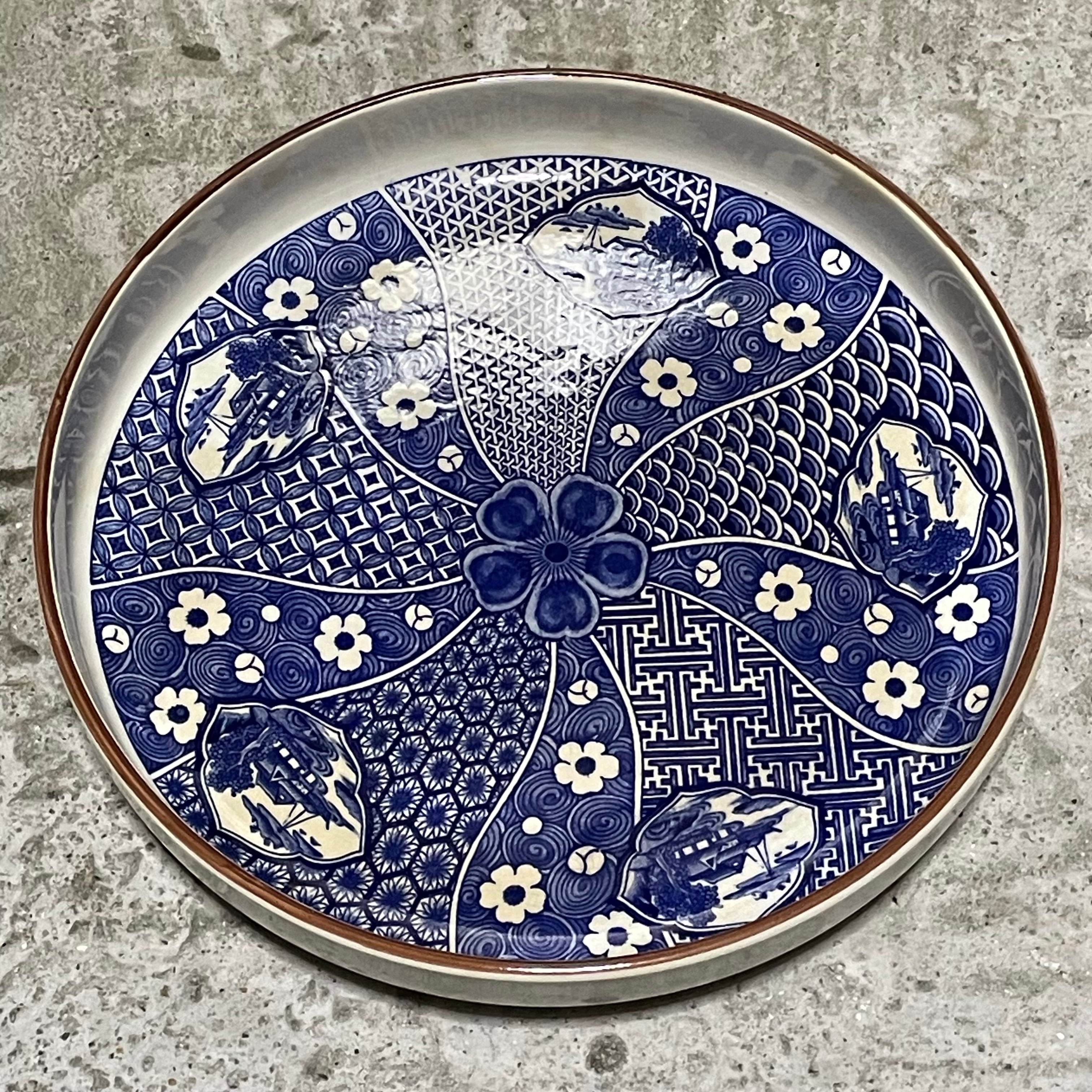 白磁に深い藍色が映える、有田焼の染付大皿です。